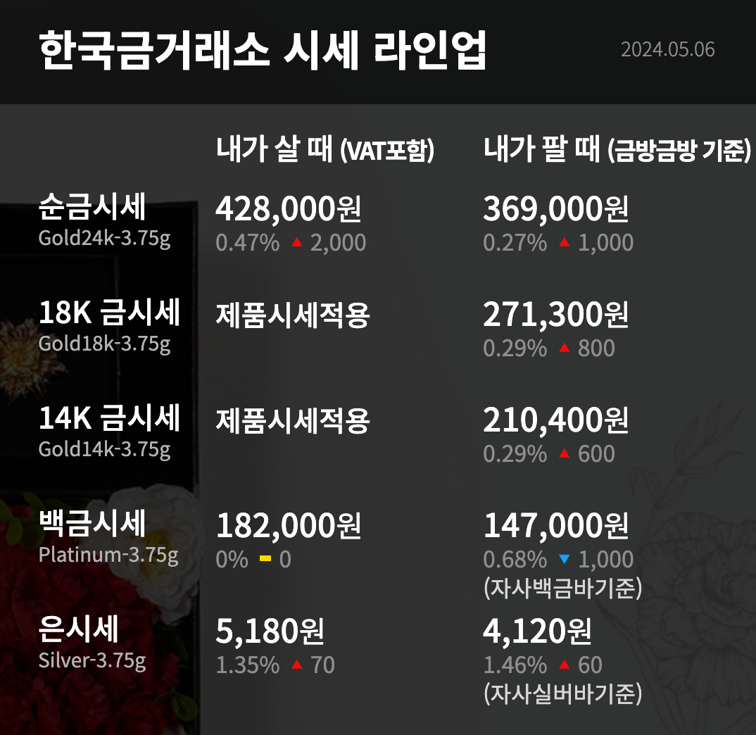 - 순금: 3.75g당 428,000원 (전일 대비 0.47% 상승)